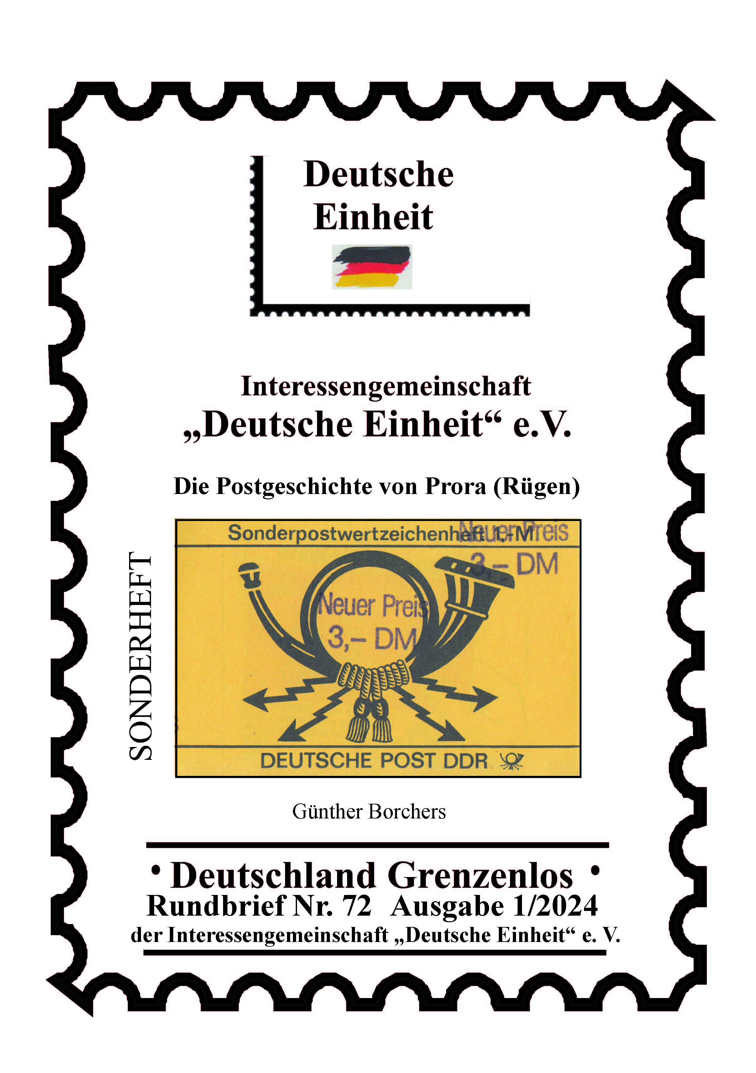 Rundbrief Nr. 72: Sonderheft zur Postgeschichte von Prora (Rügen)Der Rundbrief Nummer 72 erschien als Sonderheft zur Postgeschichte von Prora (Rügen).Durch die schönen Urlaubswochen die wir auf der schönen Insel Rügen verbracht haben, konnte ich den Kontakt zum Postamtsleiter Reinhard Priebe herstellen und ausbauen. Dadurch konnte ich viele Interna und alltäglichen Probleme der DDR Postler in Erfahrung bringen. Ich konnte auch einige Interne Unterlagen und historische Fotos für diese Ausarbeitung bekommen. Dies möchte ich Ihnen in einem Sonderheft präsentieren. Dazu gehört auch das Sonderthema der Sondermarkenhefte von Prora. Günther Borchers |